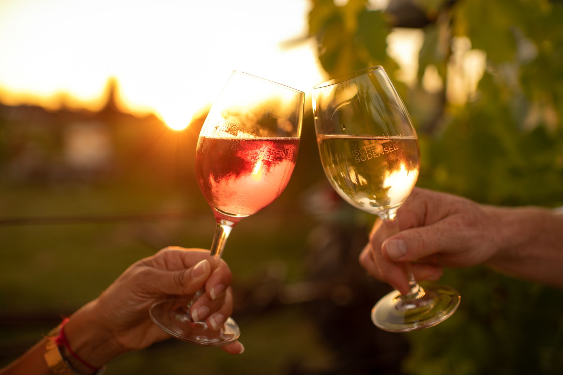 Weinglas mit Nonnenhorn Logo und Schriftzug „Am See genießen“