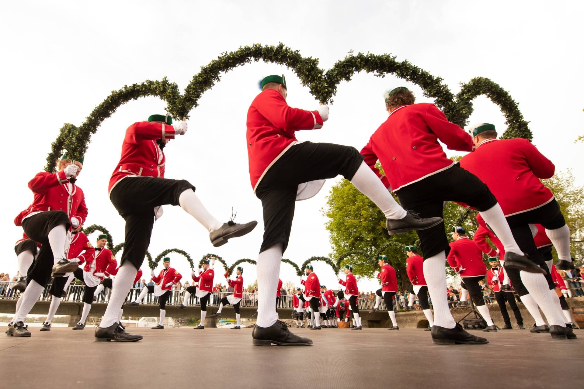 Der Tanz wird von den Schäfflern in altdeutscher Tracht auf einer