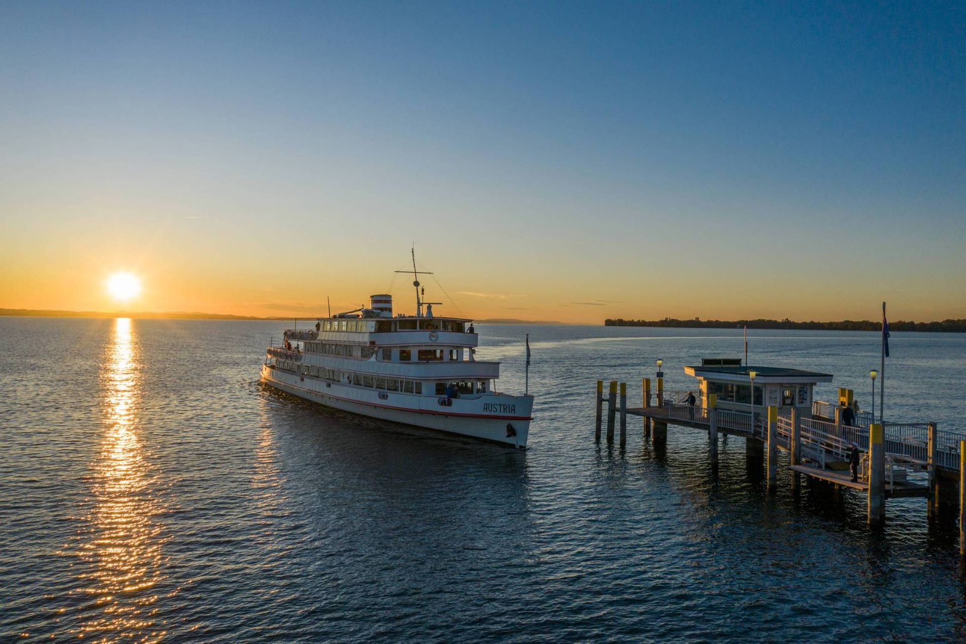 Von unserem neuen Selfie Point am Landesteg haben Sie eine herrliche Sicht auf den Bodensee und die Schweizer Berge.